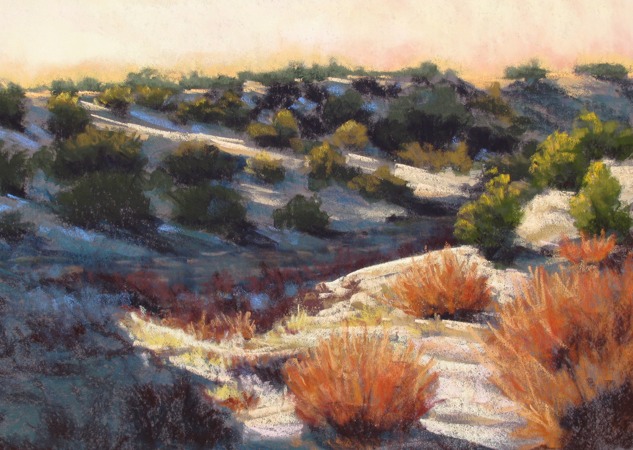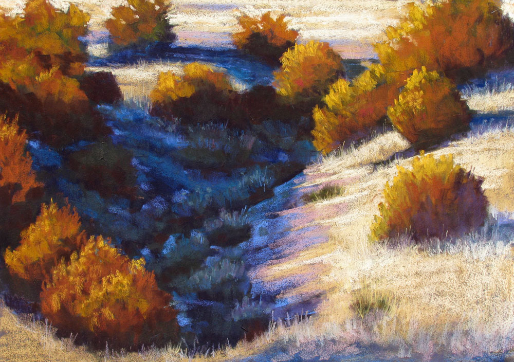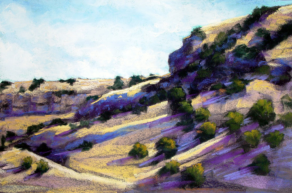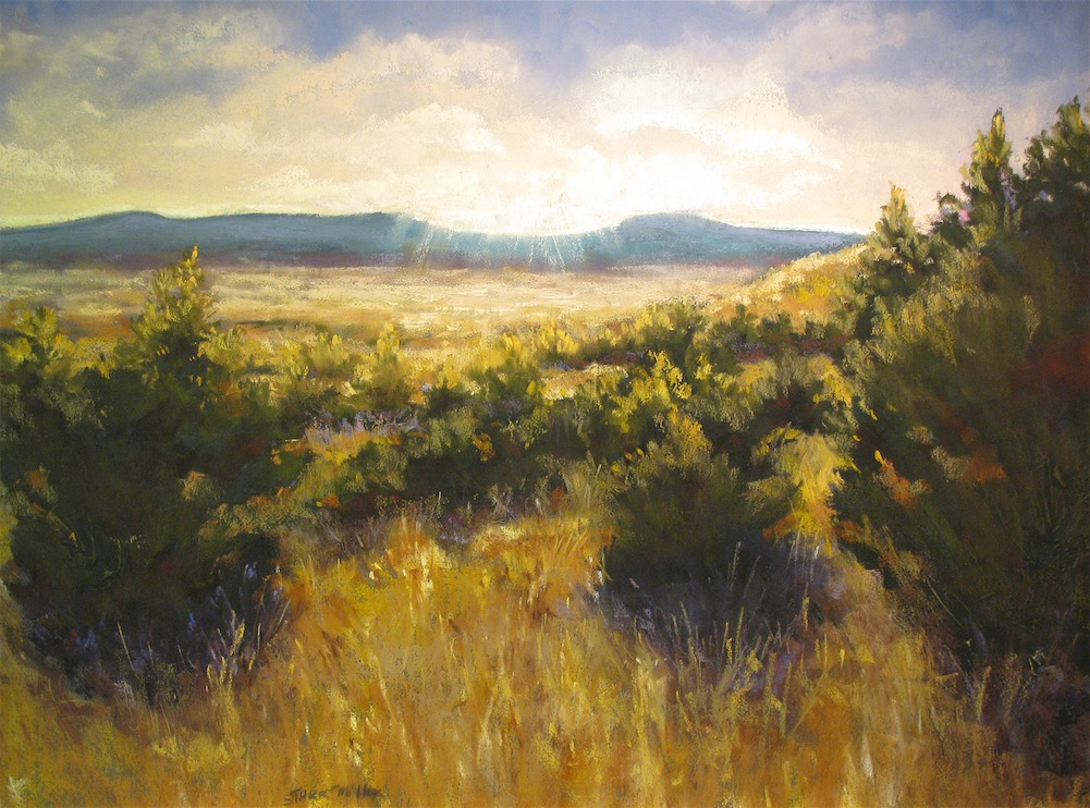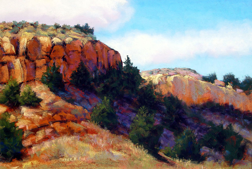 Starr Miller has a BA in Art and Education from the University of Northern Colorado. She taught Art and Ceramics for 30 years in Pueblo, Colorado schools. Starr presently devotes her time creating images of regional landscapes in pastel. The Southern Colorado plains and foothills are her muse. Pastels have proven to be the perfect medium due to their luminous color, durability and spontaneity. Bold strokes and surprise color are typical of the paintings that capture often overlooked lighting and nuances of the high plains.