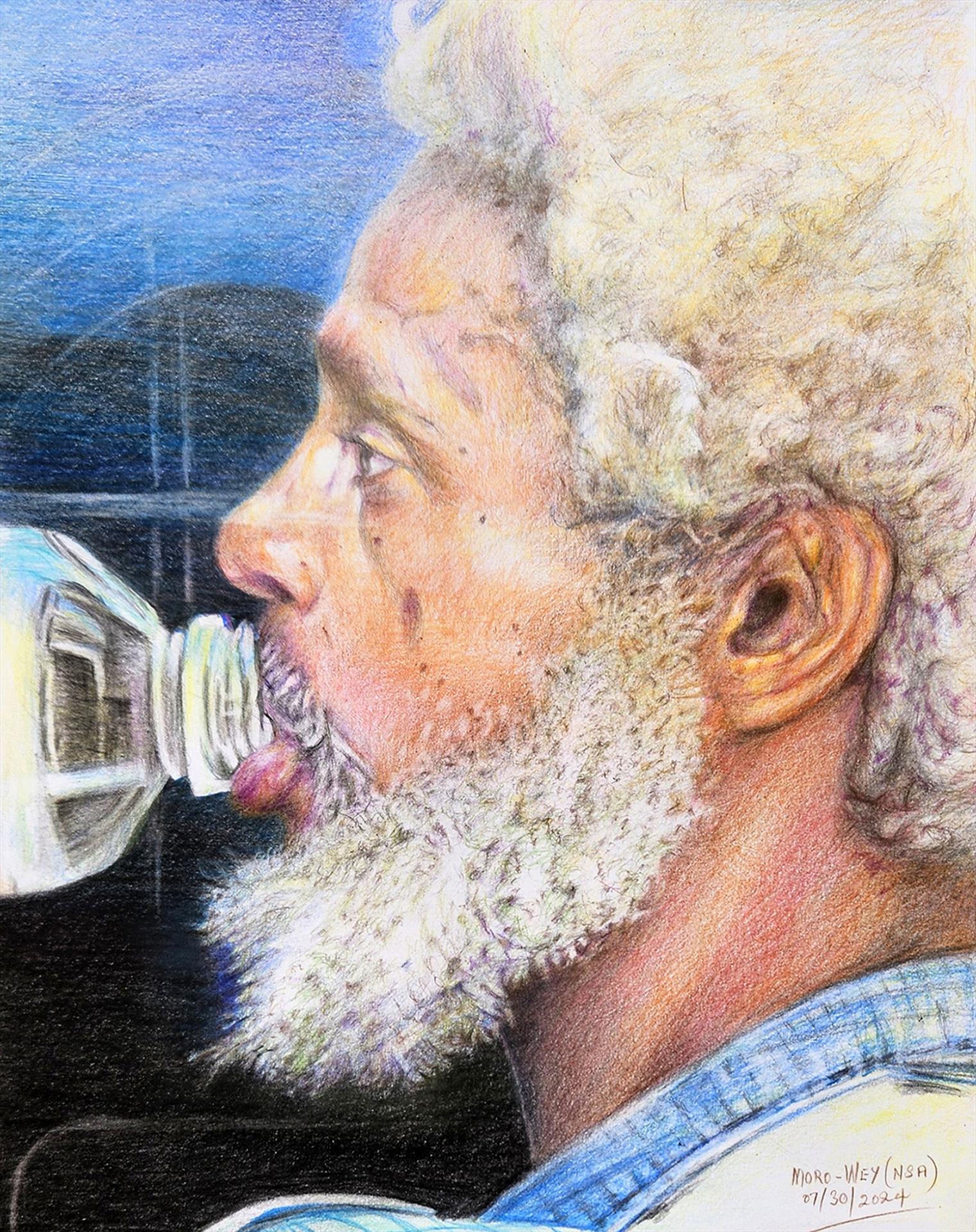 Very strong piece; strong shape and would look great 10 times the size of it; very powerful portrait and shape. Very strong drawing; color temperature contrasts; biggest impact is the shape.
