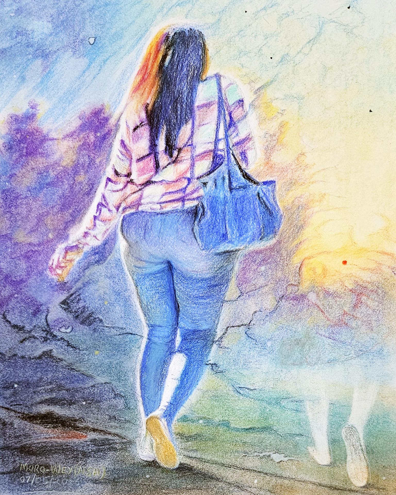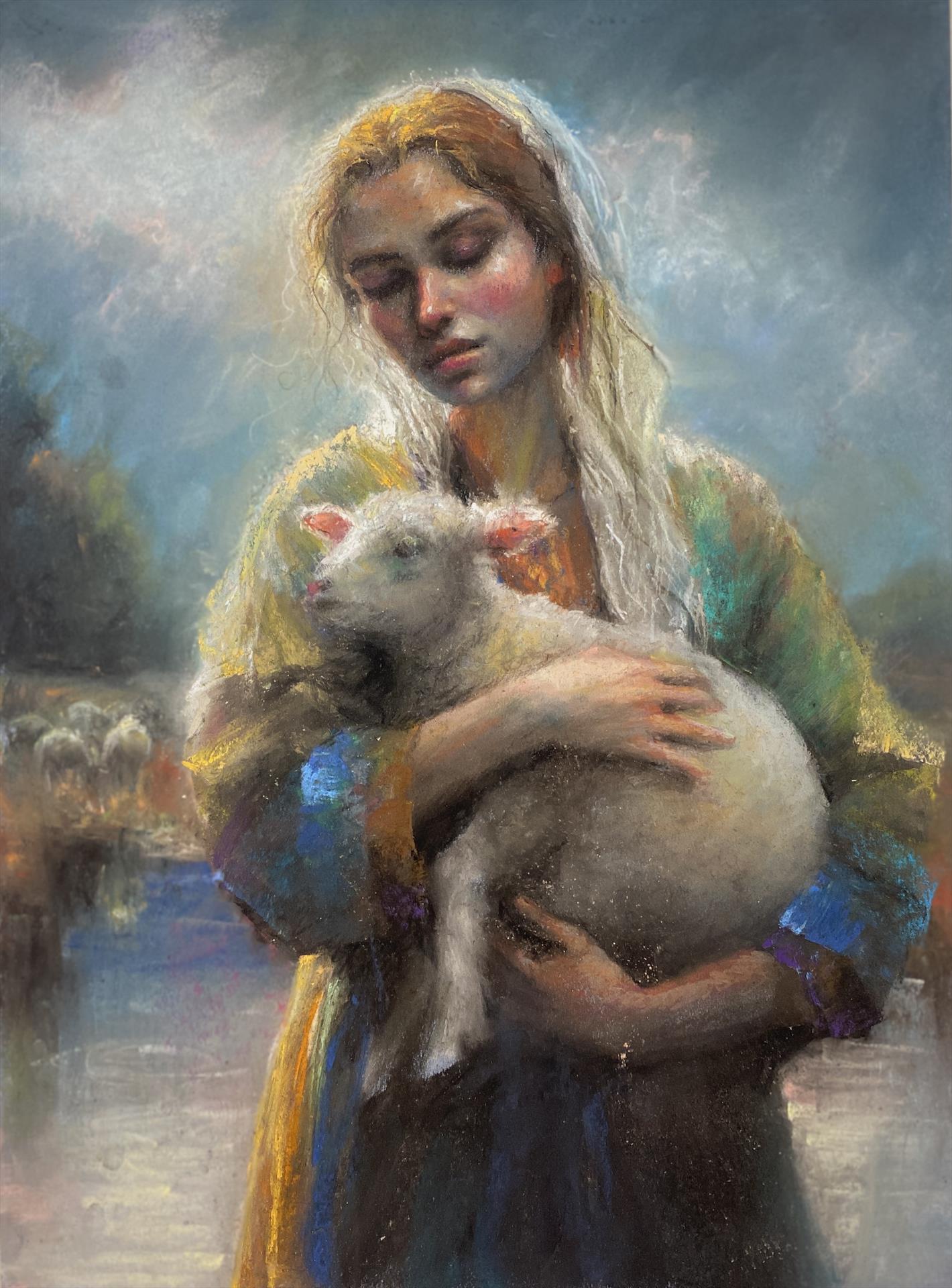 Love the spot of light on the shoulder; lots of emotion and tenderness in the subject matter. It’s amazing that someone (with just pastels) can pull out the type of emotion that this painting does. The overall color is very muted with small flashes of bright color that maintains the mood of the painting.