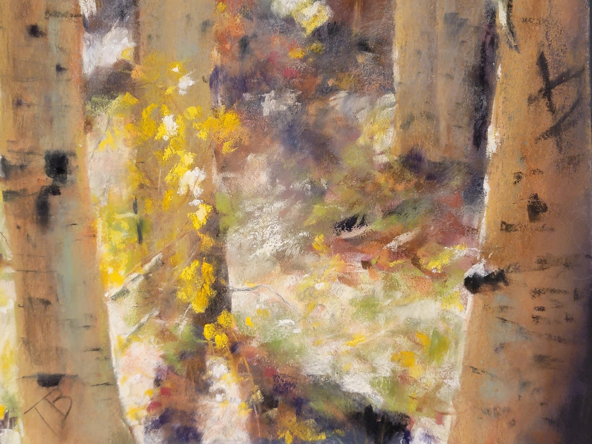 Love the tall format and how it makes you feel. This painting feels more like it’s in a different medium, but it’s pastel, which is wonderful. It is balanced with wonderful positive and negative shapes that have lovely movement and wonderful variety. Love the long format.