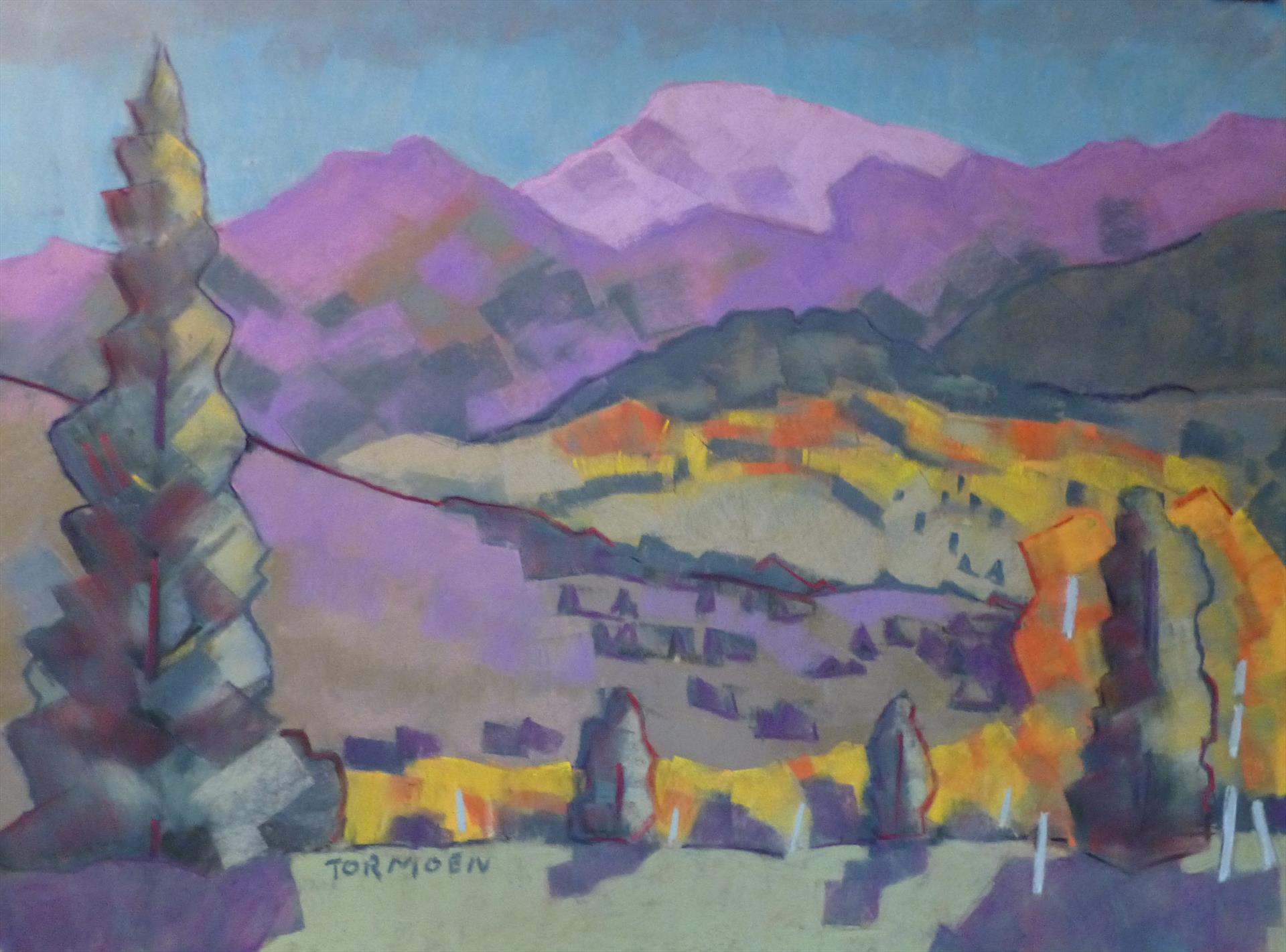 Honorable Mention: “Aspen with Purple Mountains” by Susan Tormoen